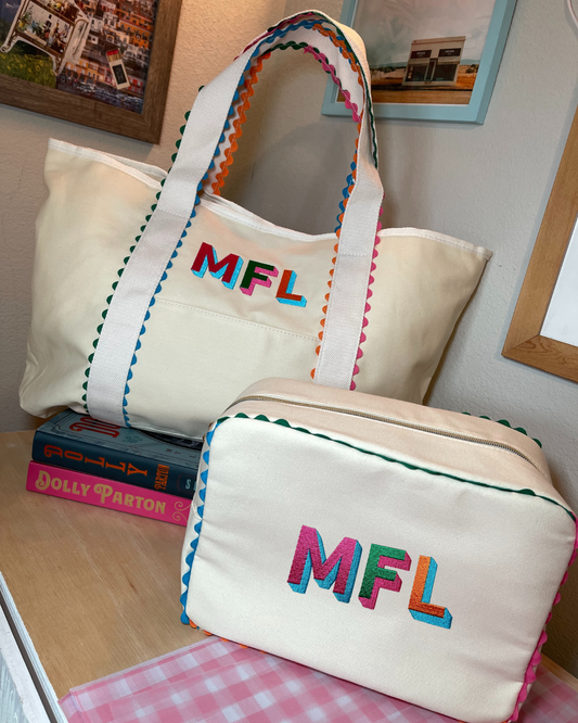 RicRac Trim Colorful Canvas Cosmetic Bag