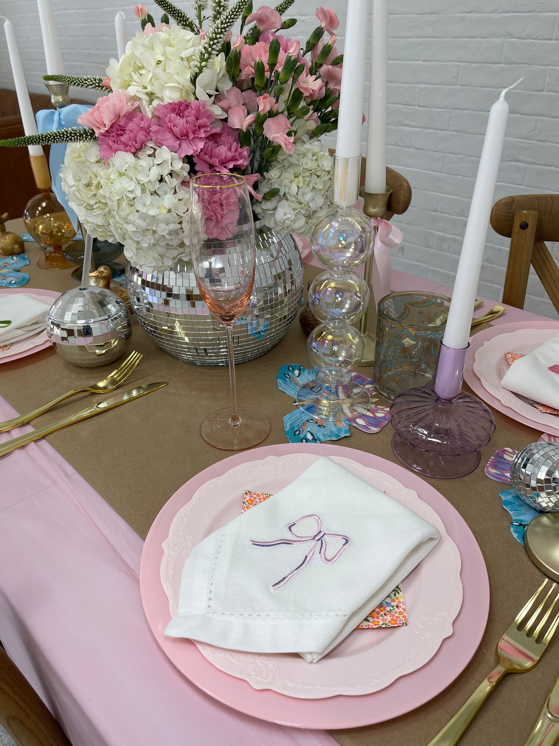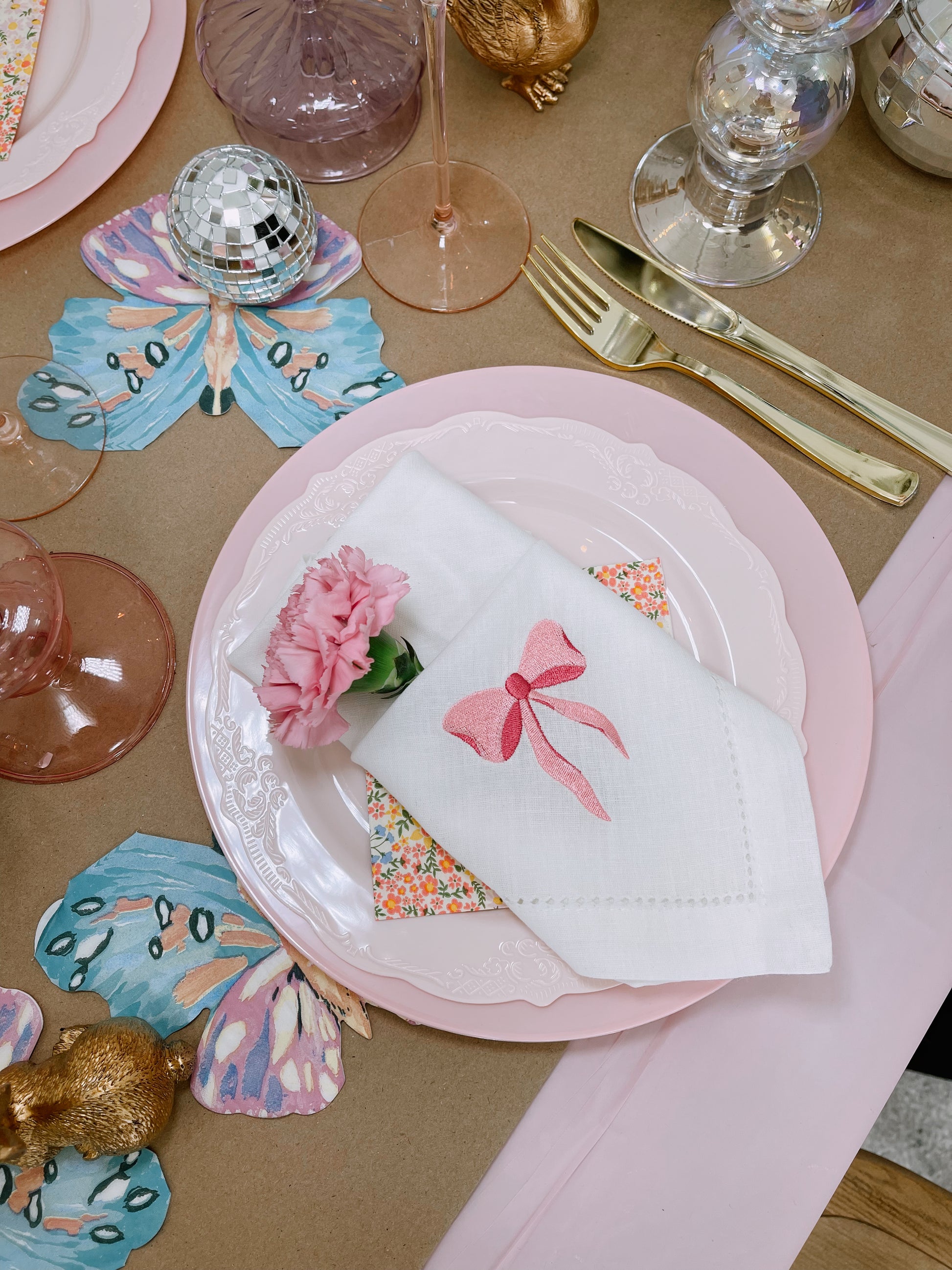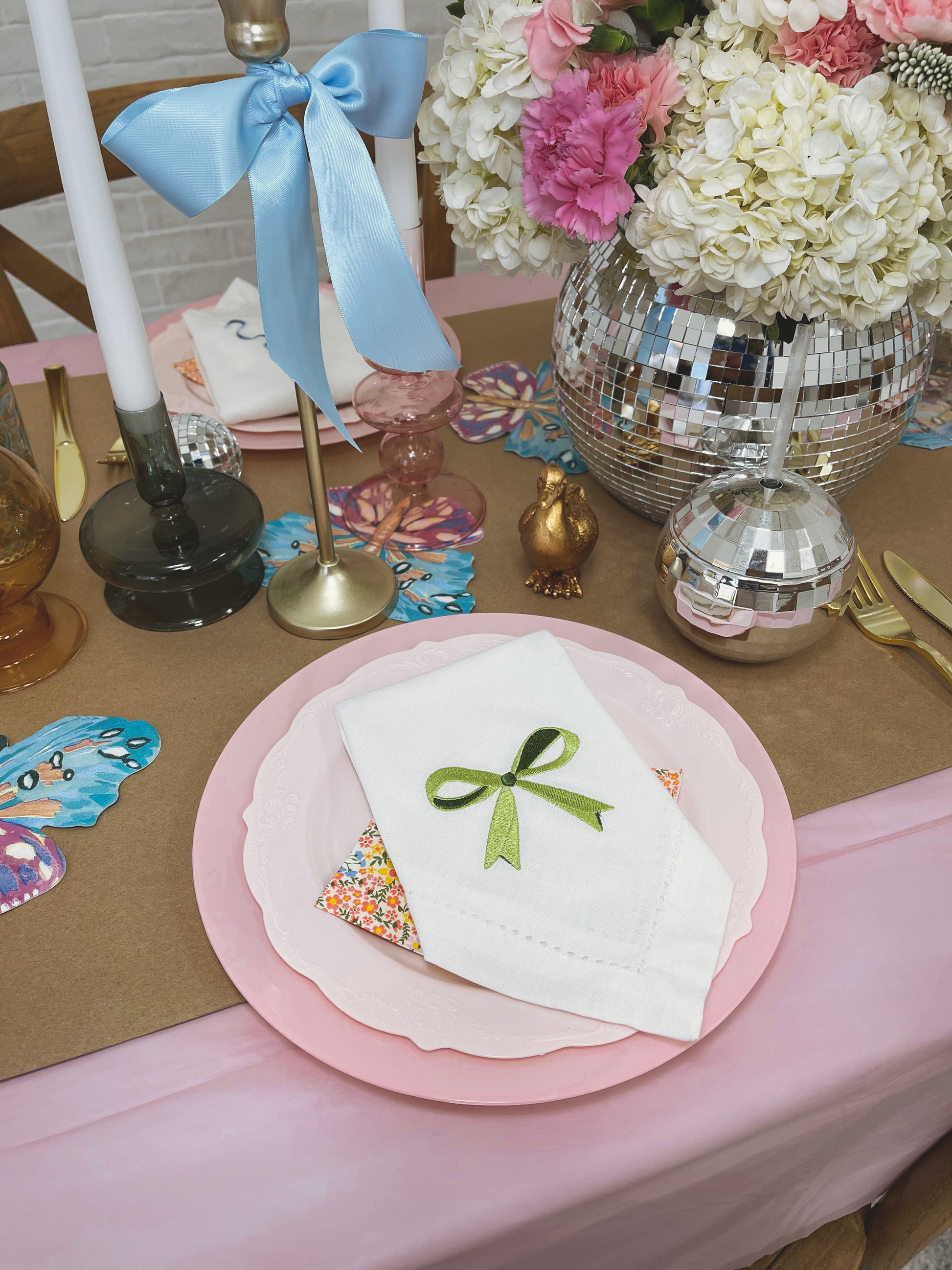 Elevate your dining experience with these charming Bow Linen Dinner Napkins. Each napkin is delicately embroidered with adorable bows, adding a touch of femininity to your table setting. Perfect for any occasion, these napkins will surely make mealtime more fun and stylish.