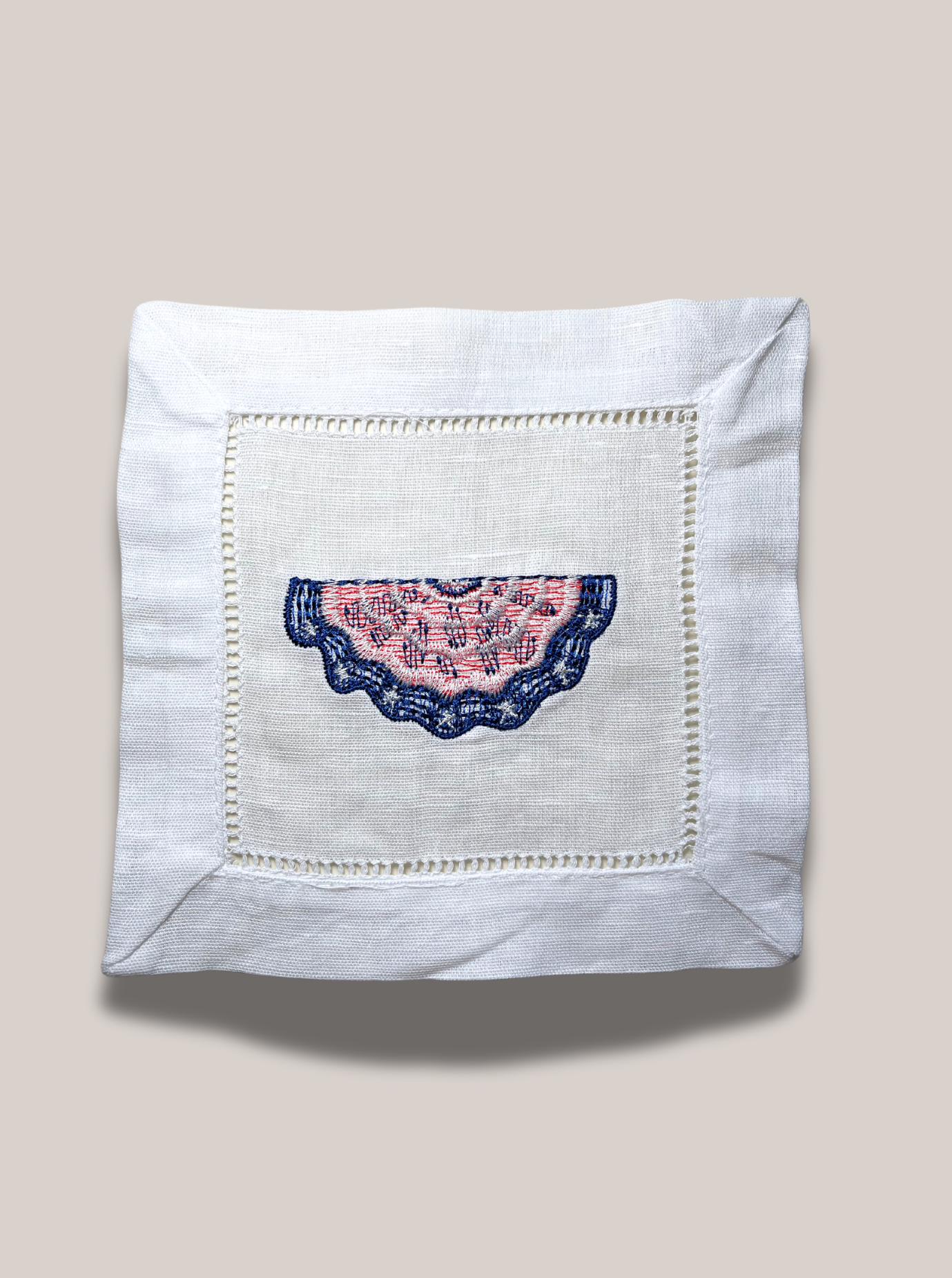 Get ready to add some patriotic charm to your next gathering with our American Bunting Flag Linen Cocktail Napkin. Its sketch style embroidered design adds a unique touch to any drink, while the quality linen material ensures spills are easily wiped away. Let's celebrate!