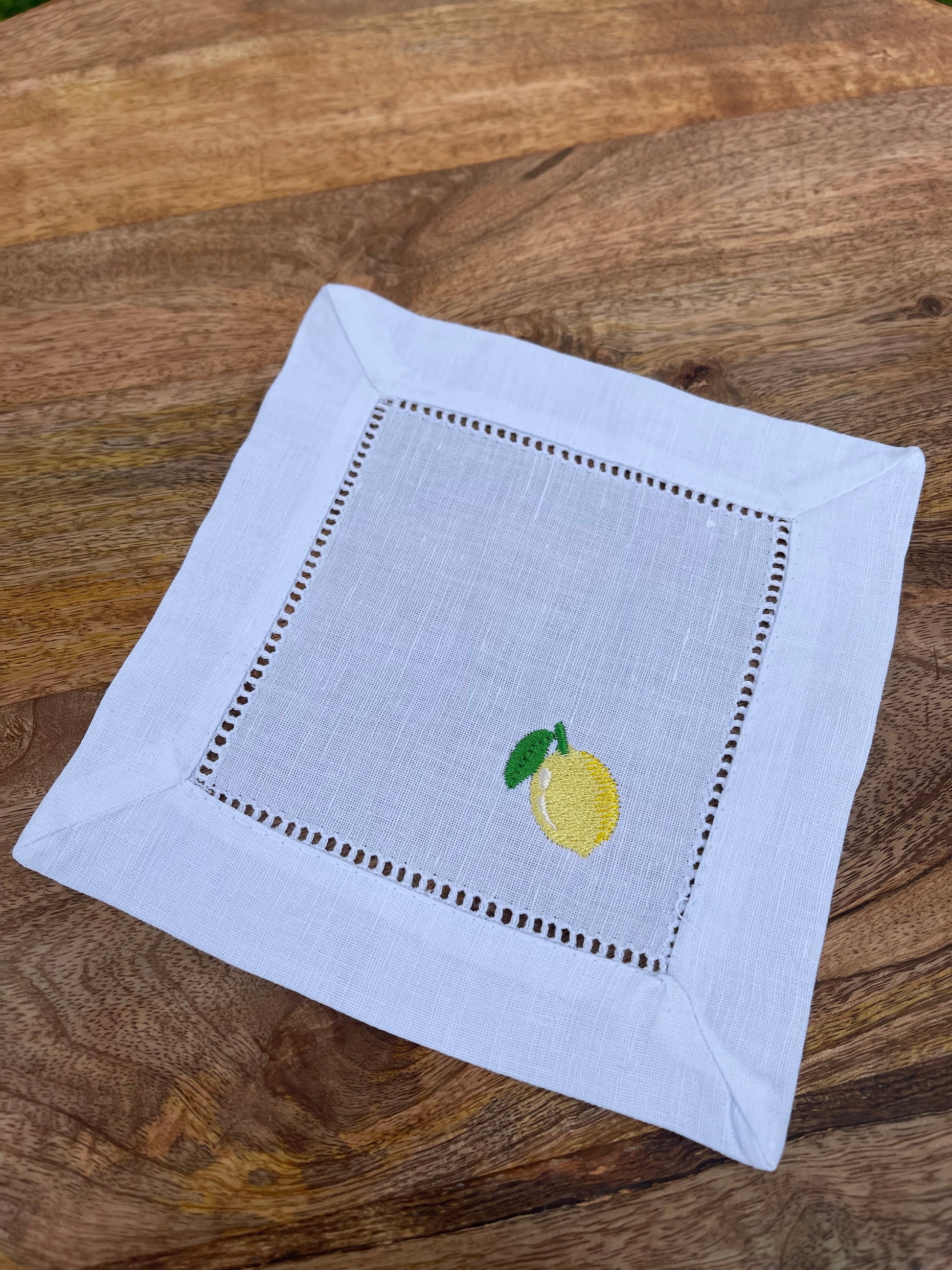 Add a pop of fun and playfulness to your summer gatherings with our Iconic Linen Cocktail Napkins. Featuring unique embroidered designs such as lemons, cherries, bees, avocados, and horseshoes, these napkins are the perfect mix-and-match addition to any occasion. Treat yourself or gift them to your loved ones for a charming touch to their home decor.