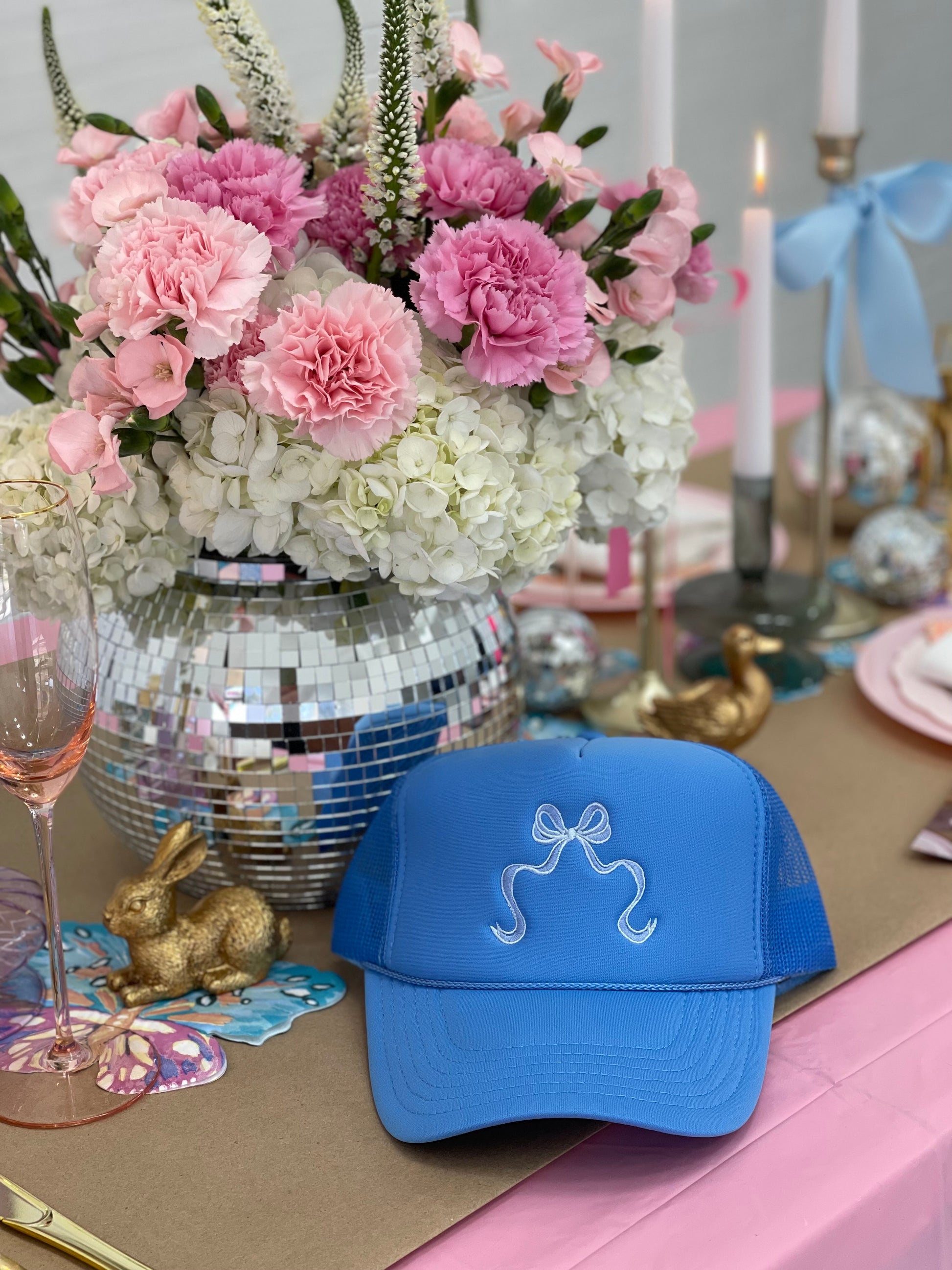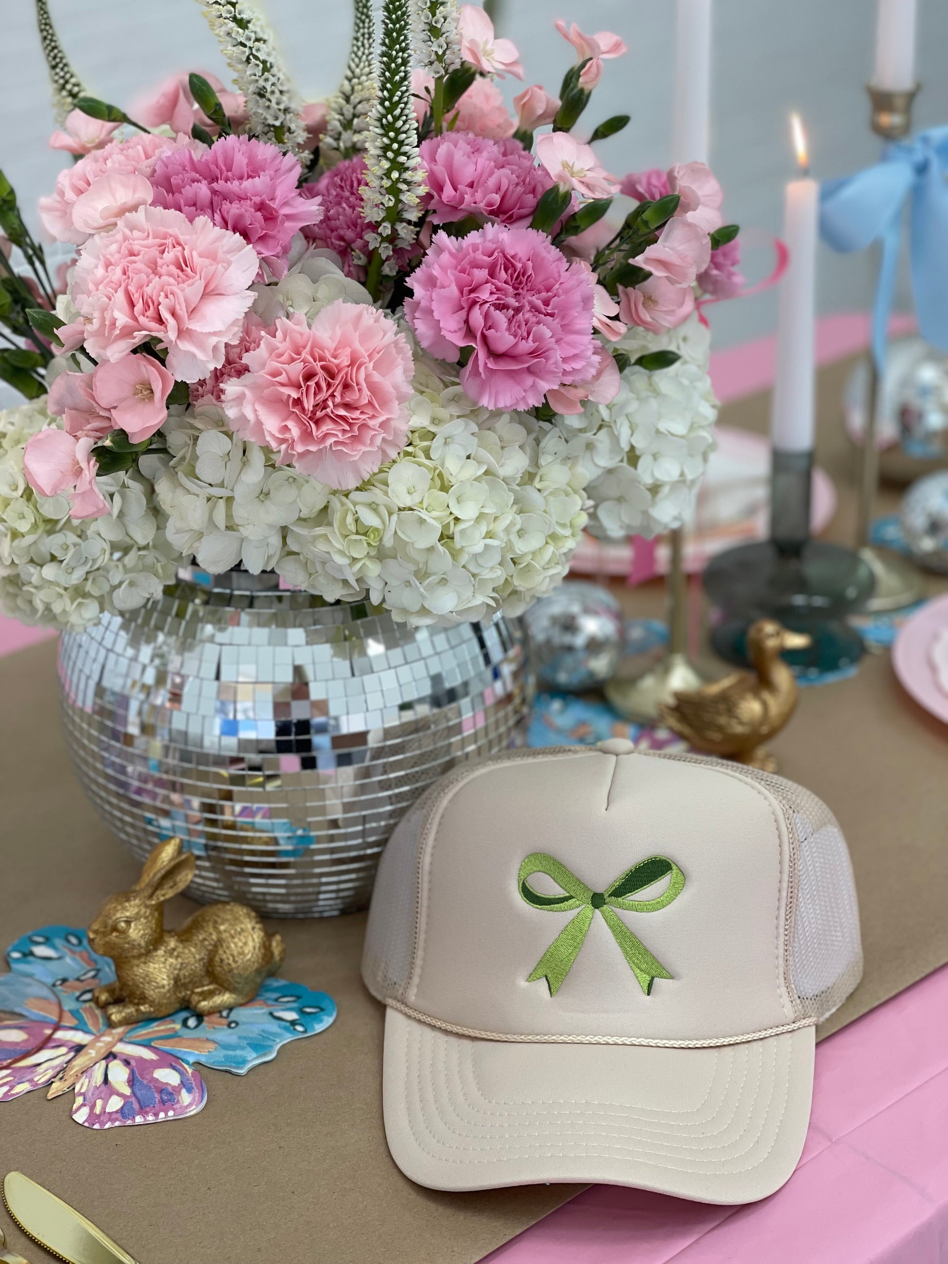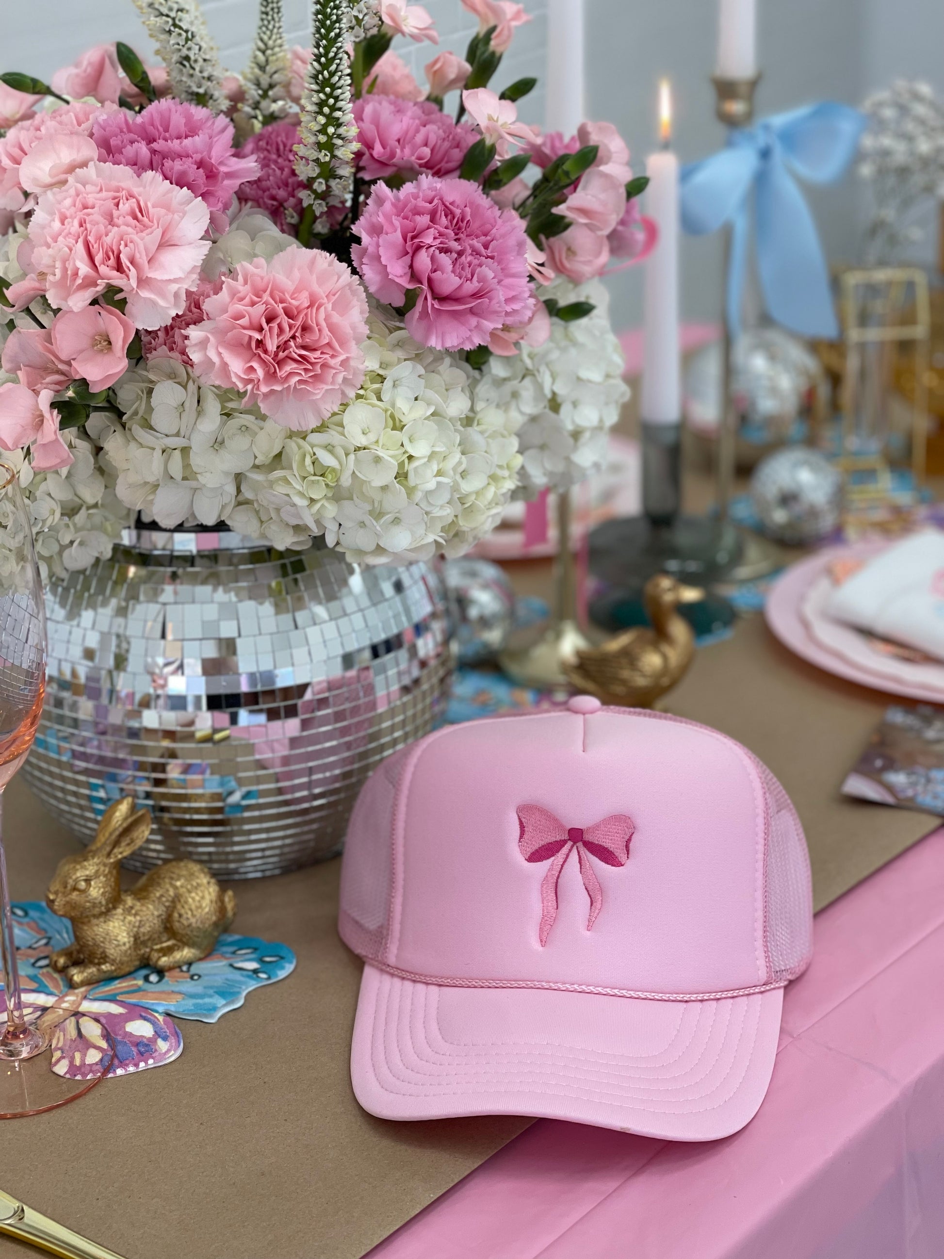 The sweetest embroidered bow trucker hats for your sweet kiddos. An assortment of color options. All options have matching adult hat available too!
