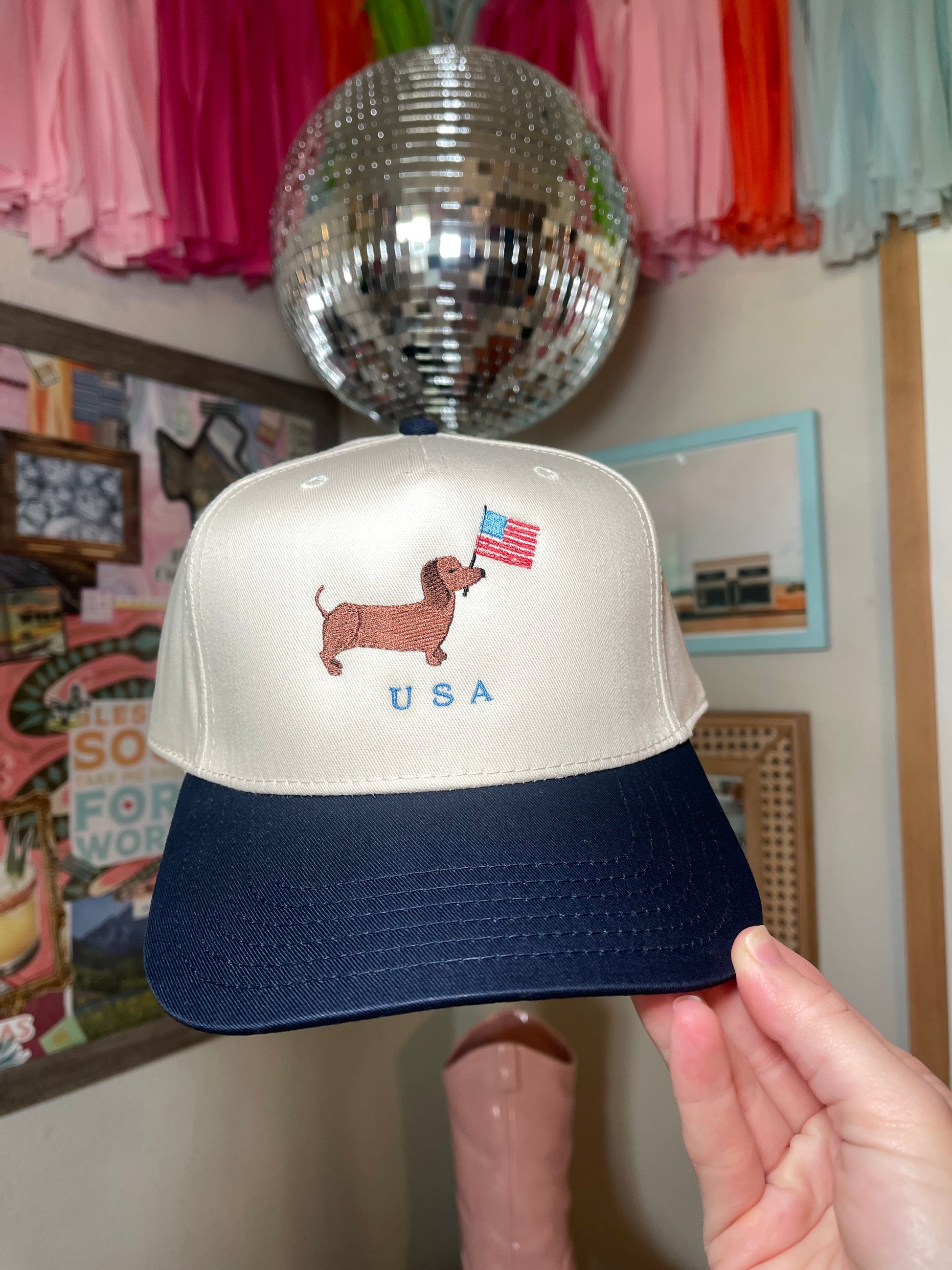 Patriotic Puppy Embroidered Hat – USA Flag Dog Hat for Memorial Day, 4th of July & Summer