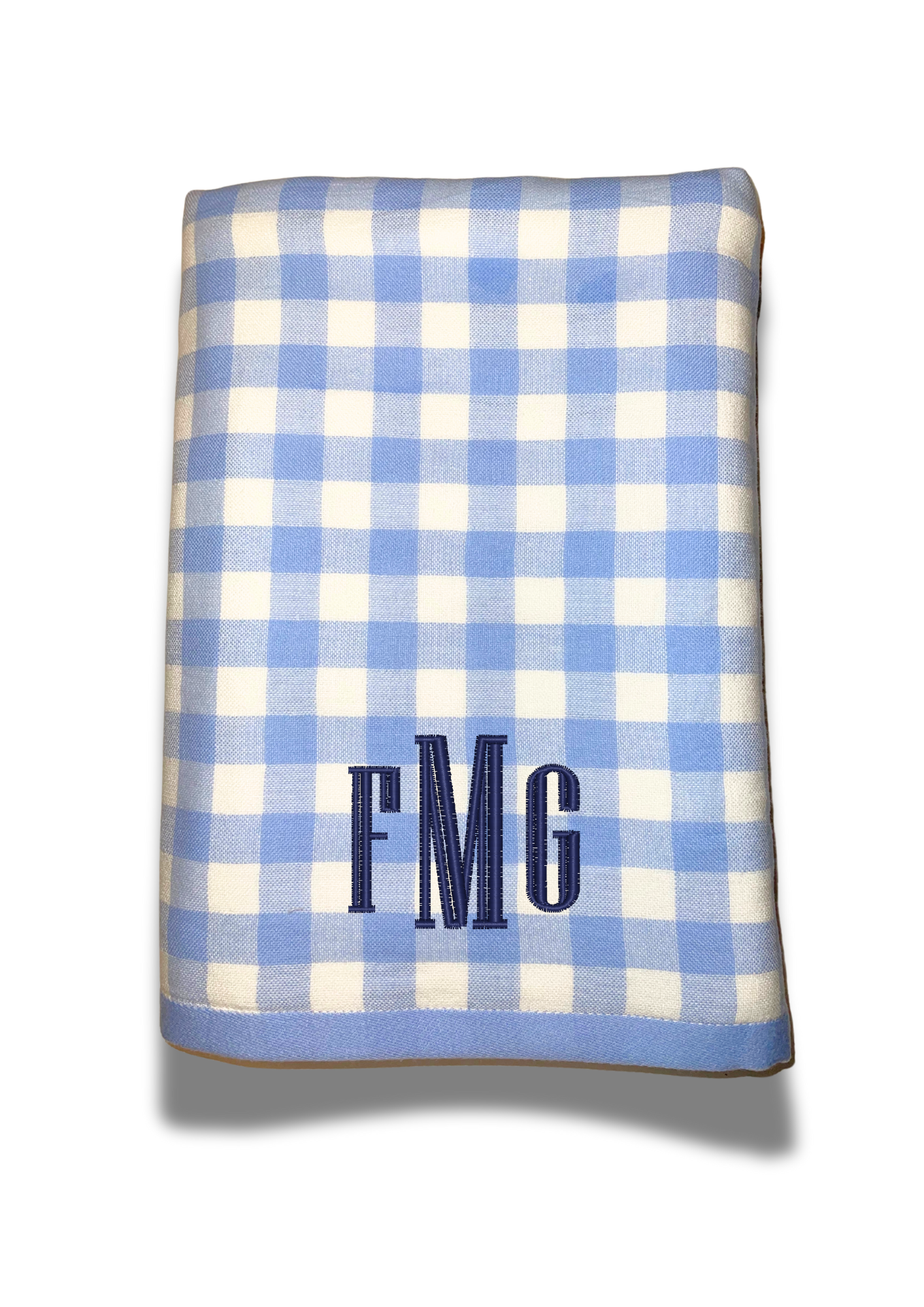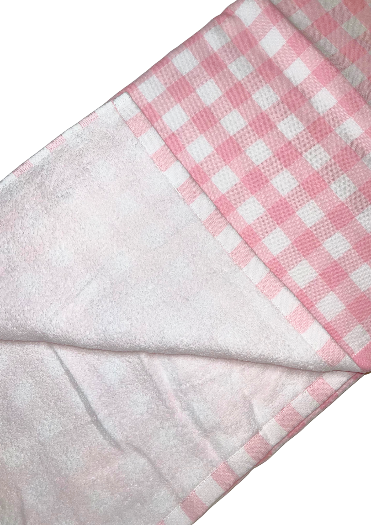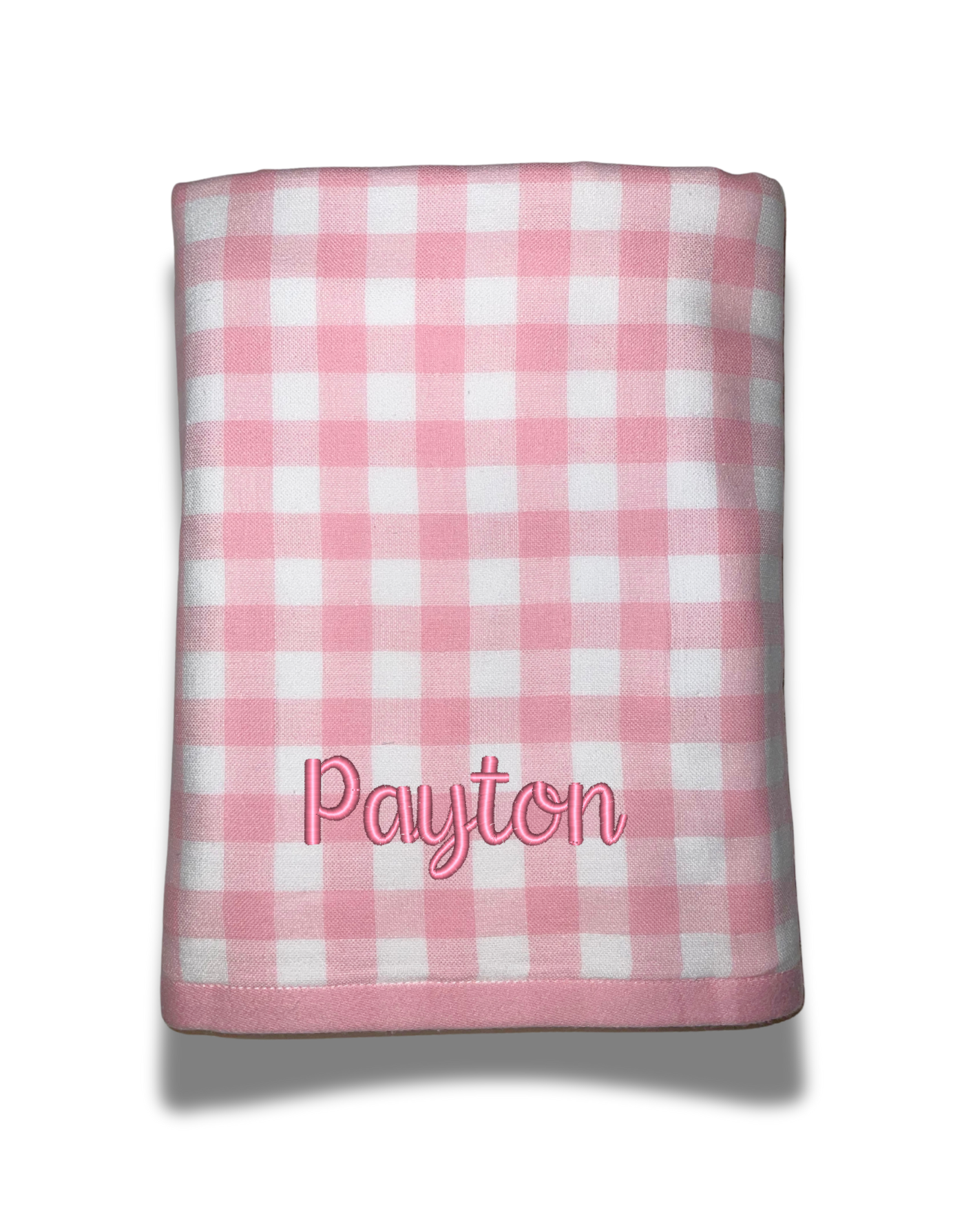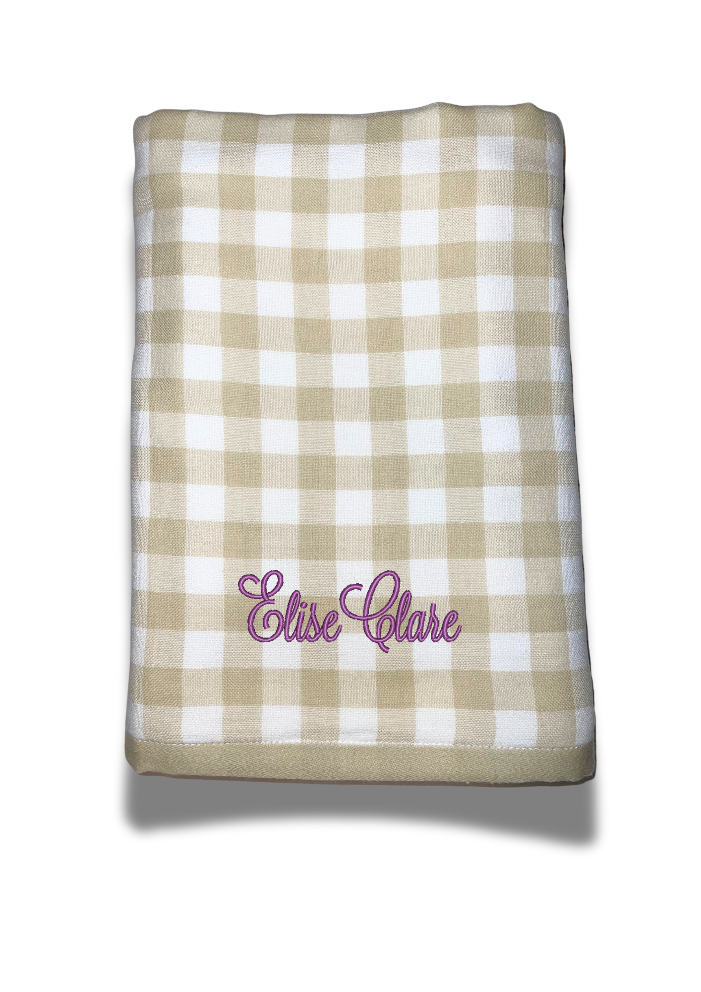This personalized gingham print terry cloth towel is a must-have for any beach or pool day. Easily find your towel with custom embroidery, available in pink, blue, or khaki. Stay stylish and dry this summer! Add custom embroidery for a special touch. Perfect for fun days in the sun!