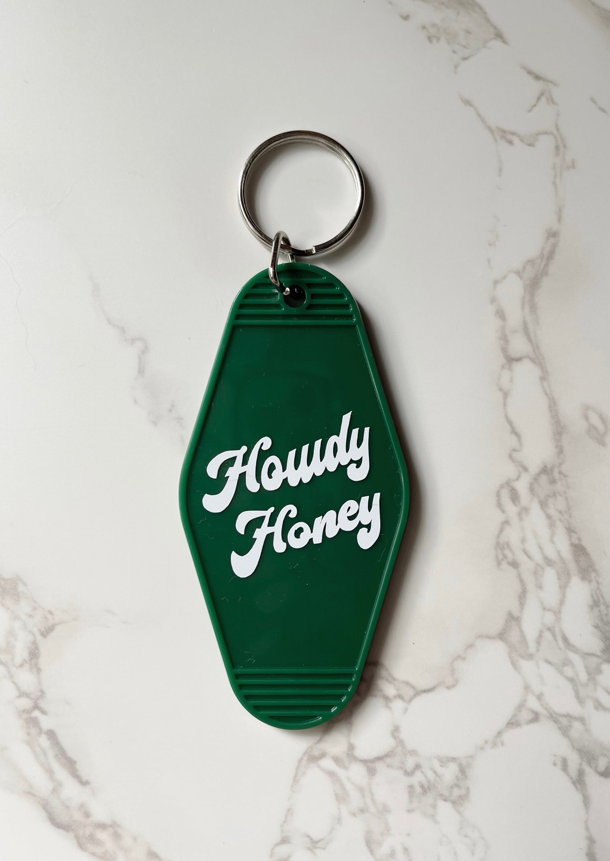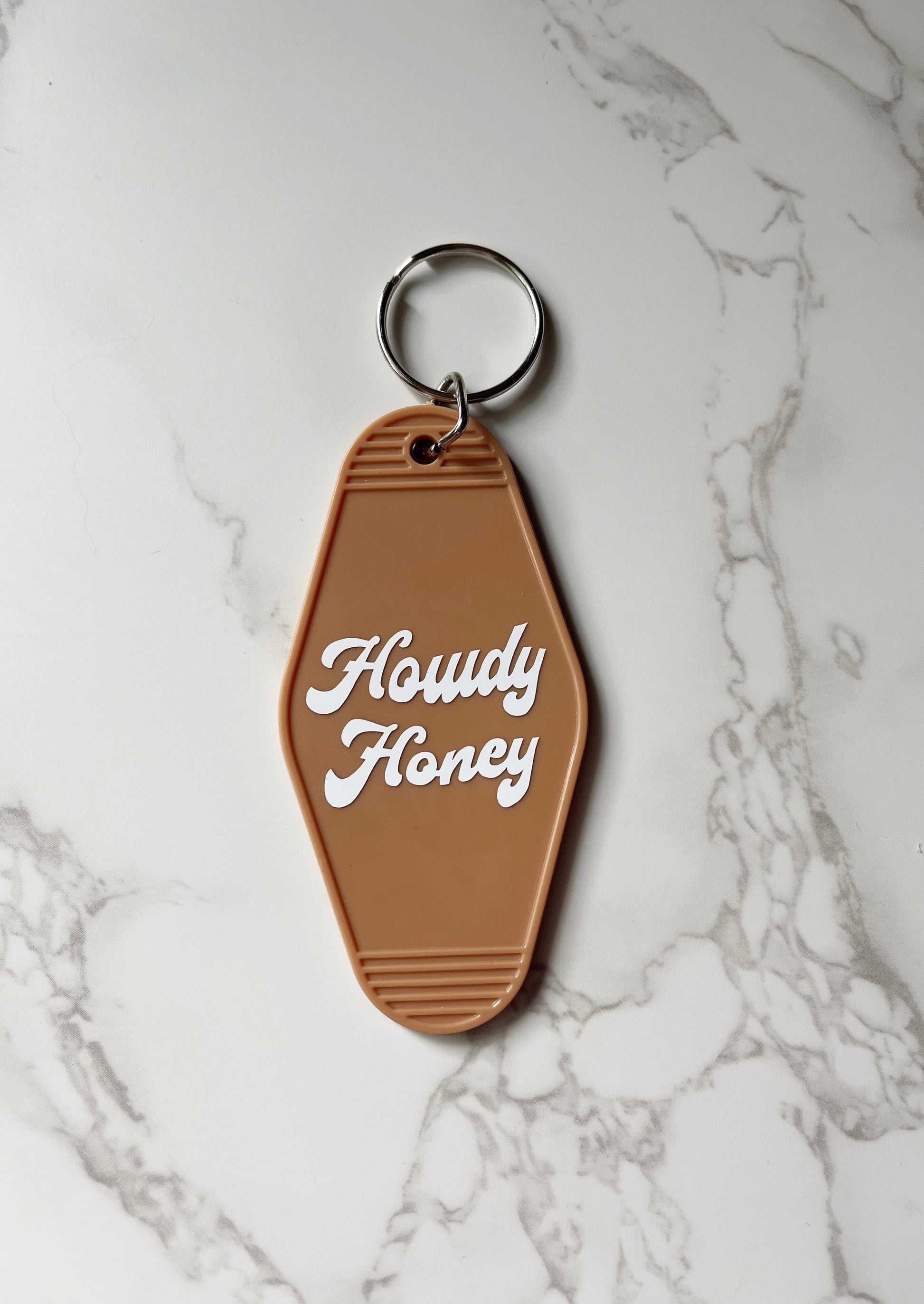 Vintage Motel Keychain. Retro western "Howdy Honey" keychain. Unique Gift Idea, Car Keys, House Keys