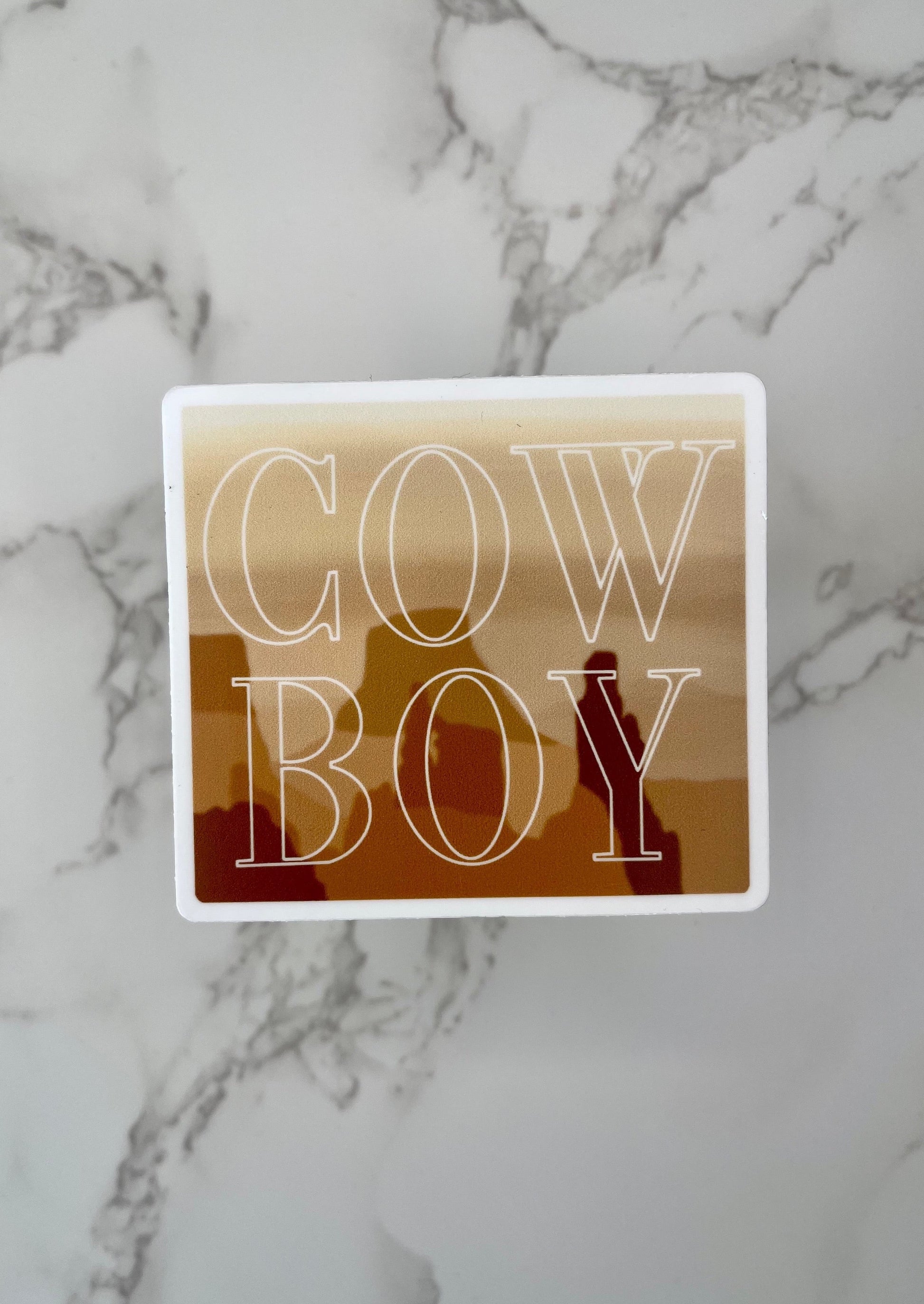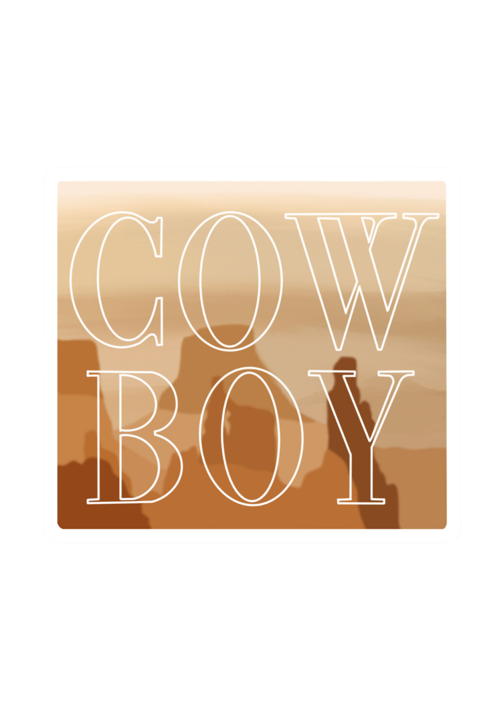 Hand drawn image turned decorative sticker. Canyon inspiration with "Cowboy" layered on top